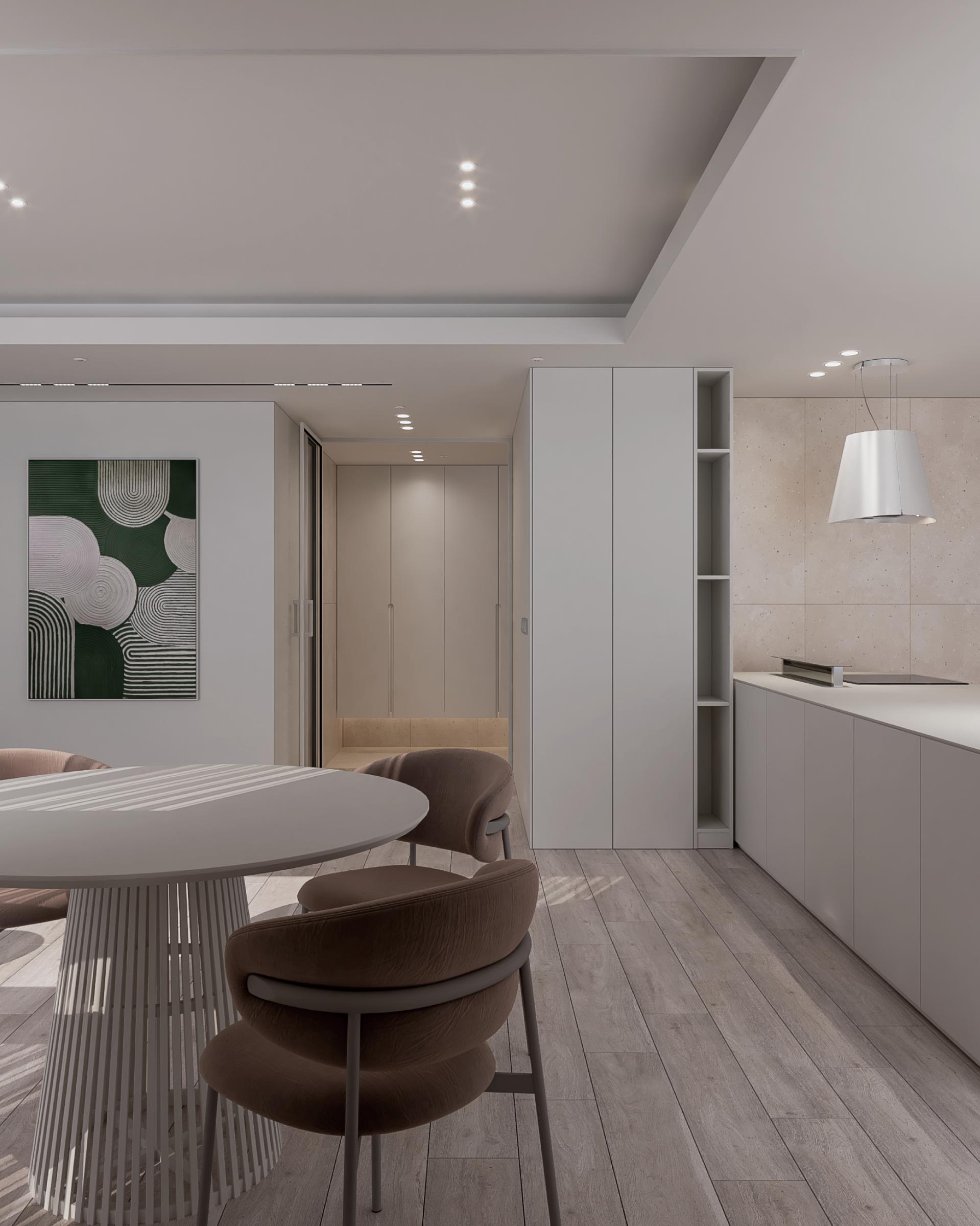 미니멀한 벽면과 깔끔한 조명 배치가 세련된 모던함을 더해, 일상 속 고용한 품격을 느낄 수 있습니다.